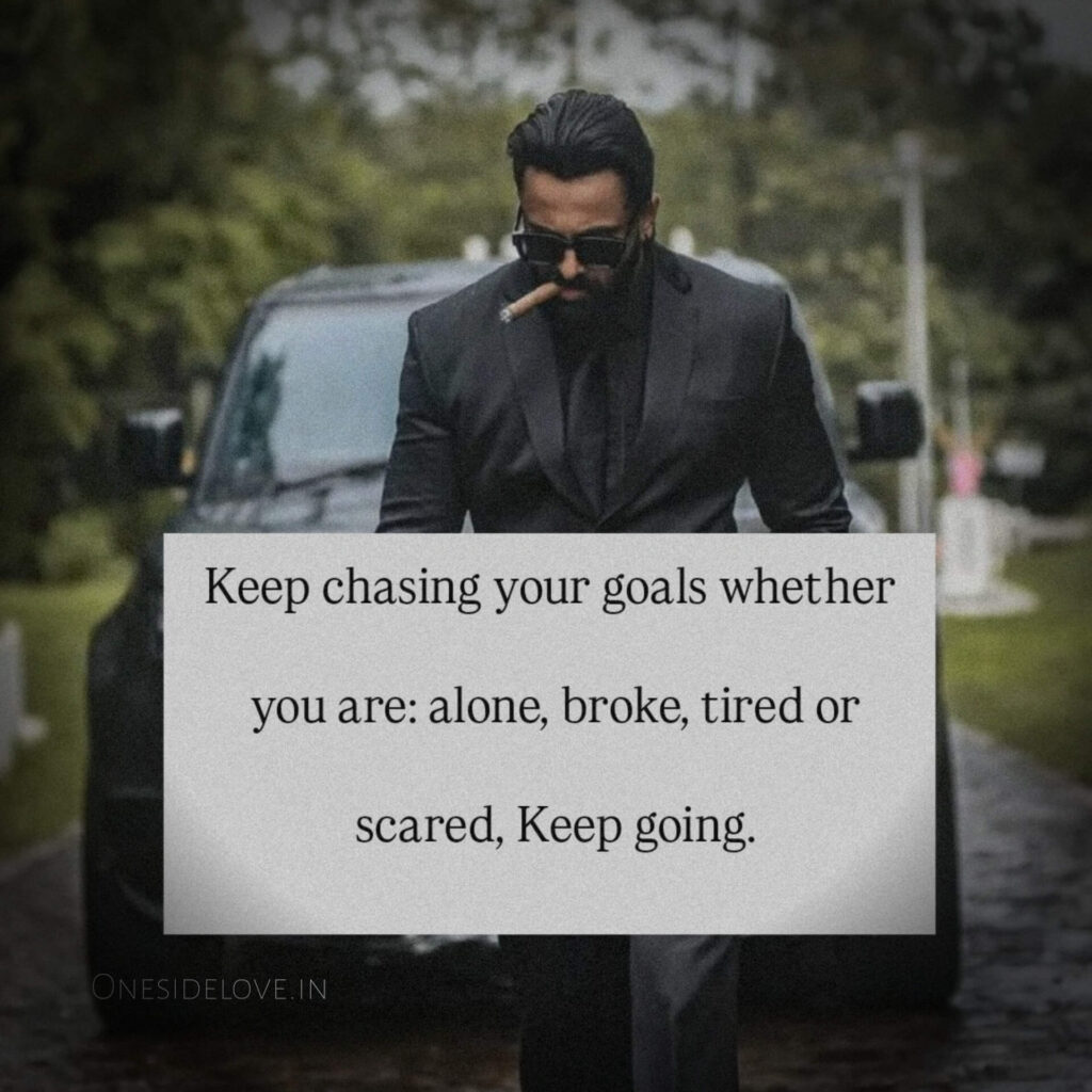 Keep chasing your goals whether you are: alone, broke, tired or scared, Keep going.😈