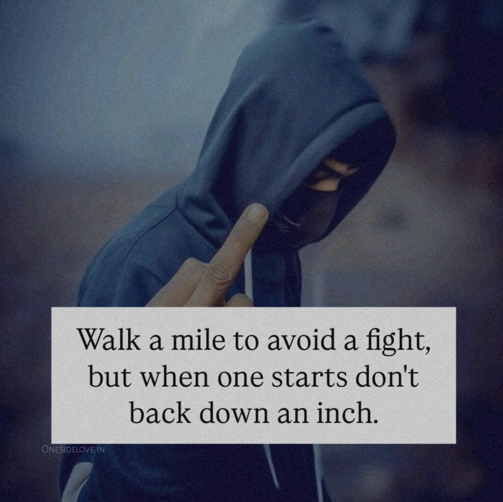 Walk a mile to avoid a fight, but when one starts don’t back down an inch.😈