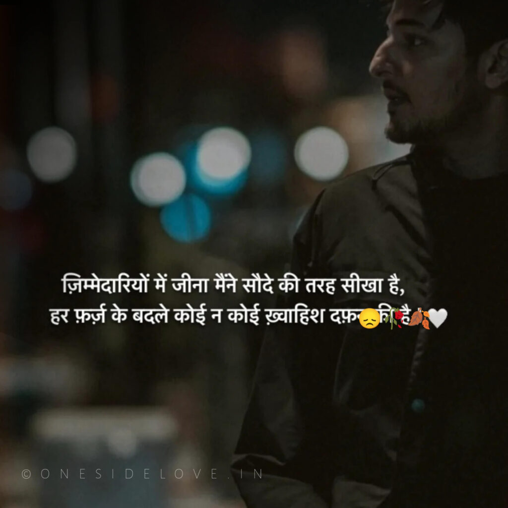 ज़िम्मेदारियों में जीना मैंने सौदे की तरह सीखा है, हर फ़र्ज़ के बदले कोई न कोई ख़्वाहिश दफ़ की है।💯🥺🍂