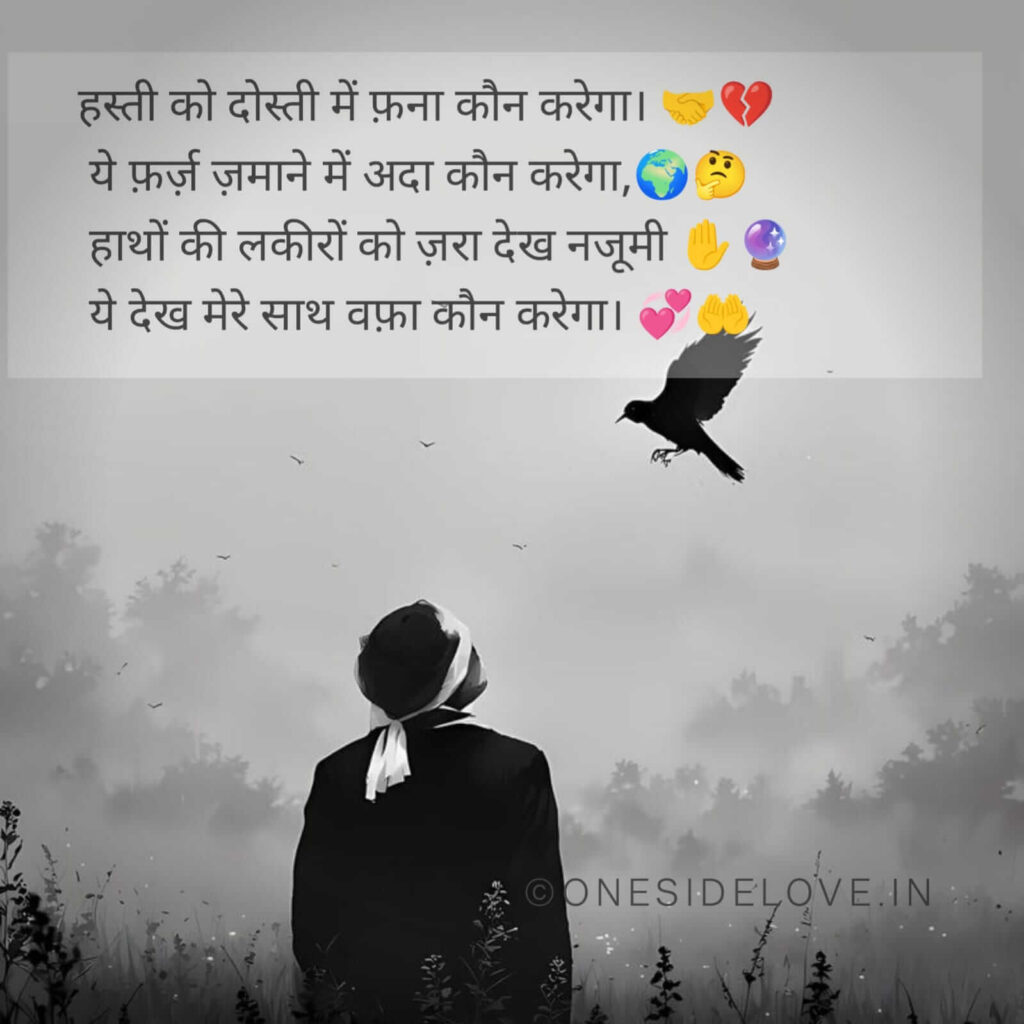 हस्ती को दोस्ती में फ़ना कौन करेगा।ये फ़र्ज़ ज़माने में अदा कौन करेगा, हाथों की लकीरों को ज़रा देख नजूमीये देख मेरे साथ वफ़ा कौन करेगा।💯🍂🥀